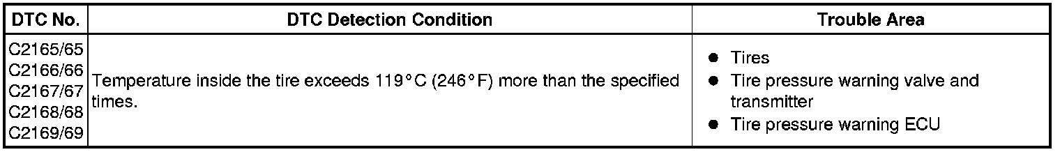 TIRE PRESSURE MONITORING: TIRE PRESSURE WARNING SYSTEM: C2165/65-C2169/69: Abnormal Temperature Inside ID1 Tire