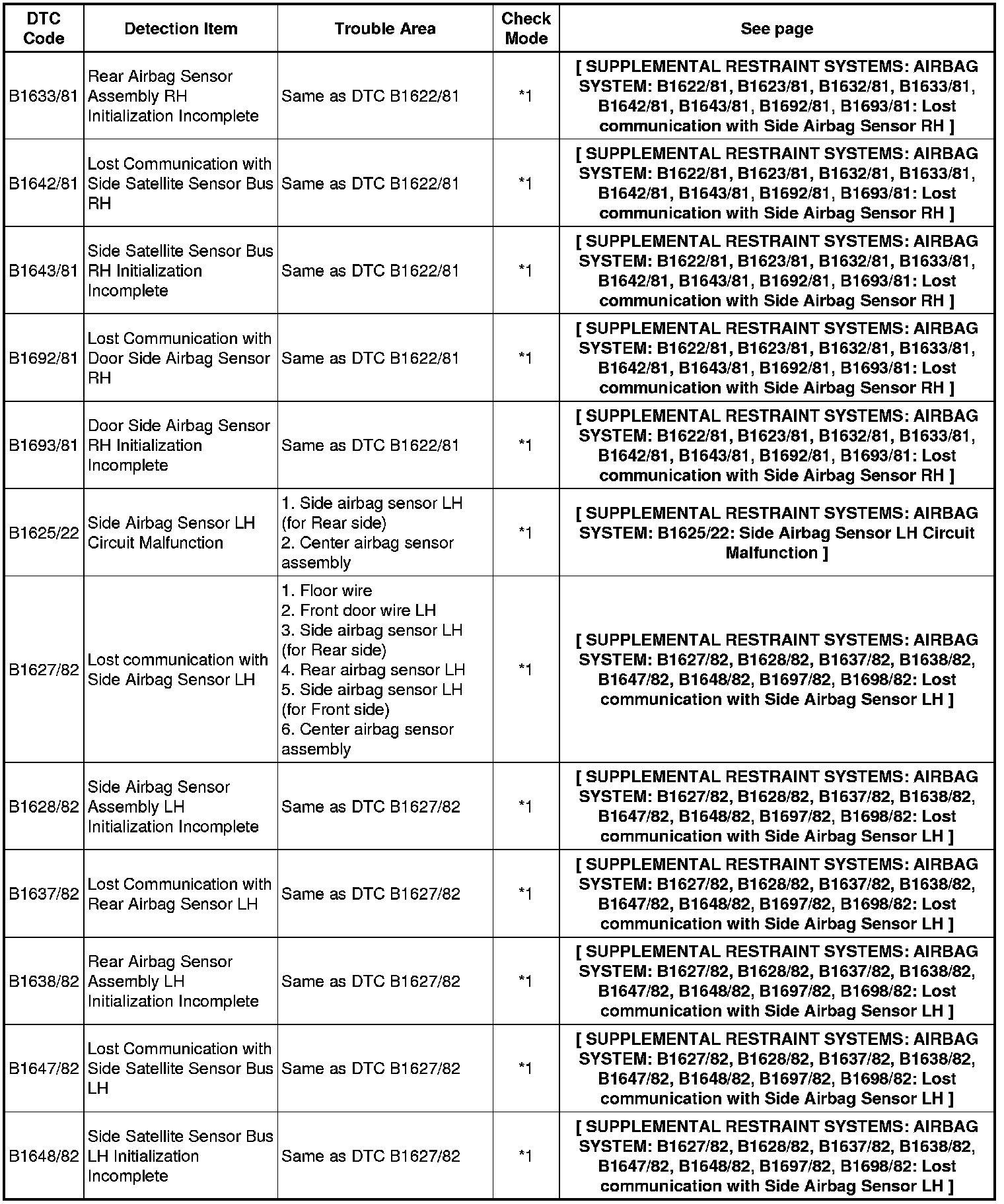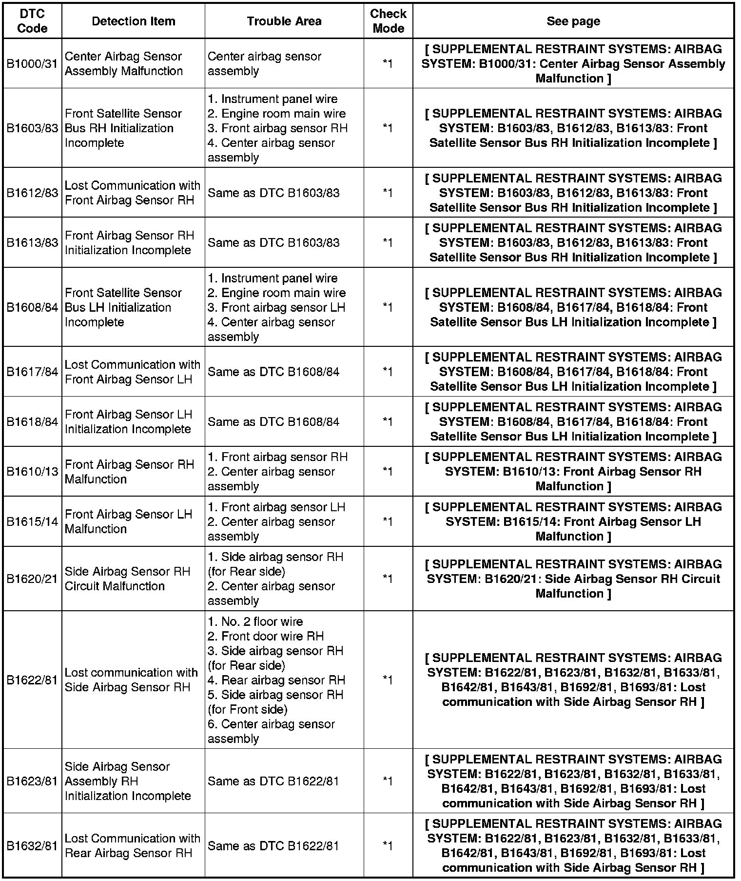 * If a code is not listed on the display chart, the center airbag sensor assembly may have failed.