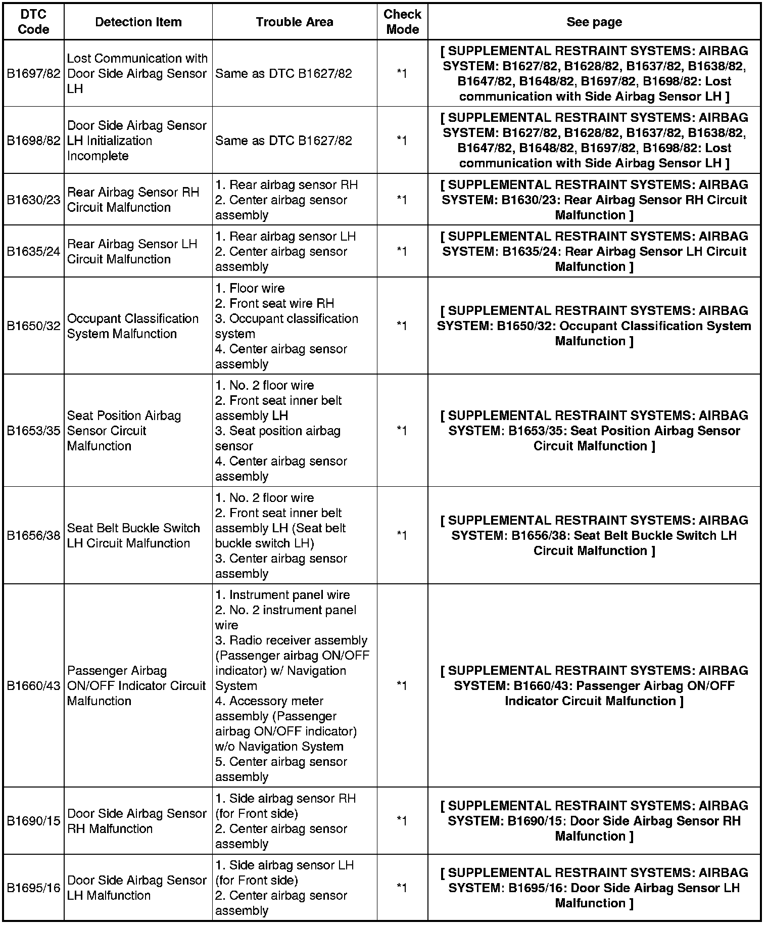If a trouble code is displayed during the DTC check, check the circuit listed for the code in the table below (refer to the appropriate page).