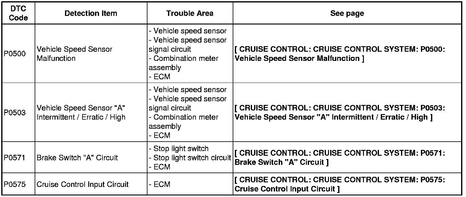 CRUISE CONTROL: CRUISE CONTROL SYSTEM: DIAGNOSTIC TROUBLE CODE CHART