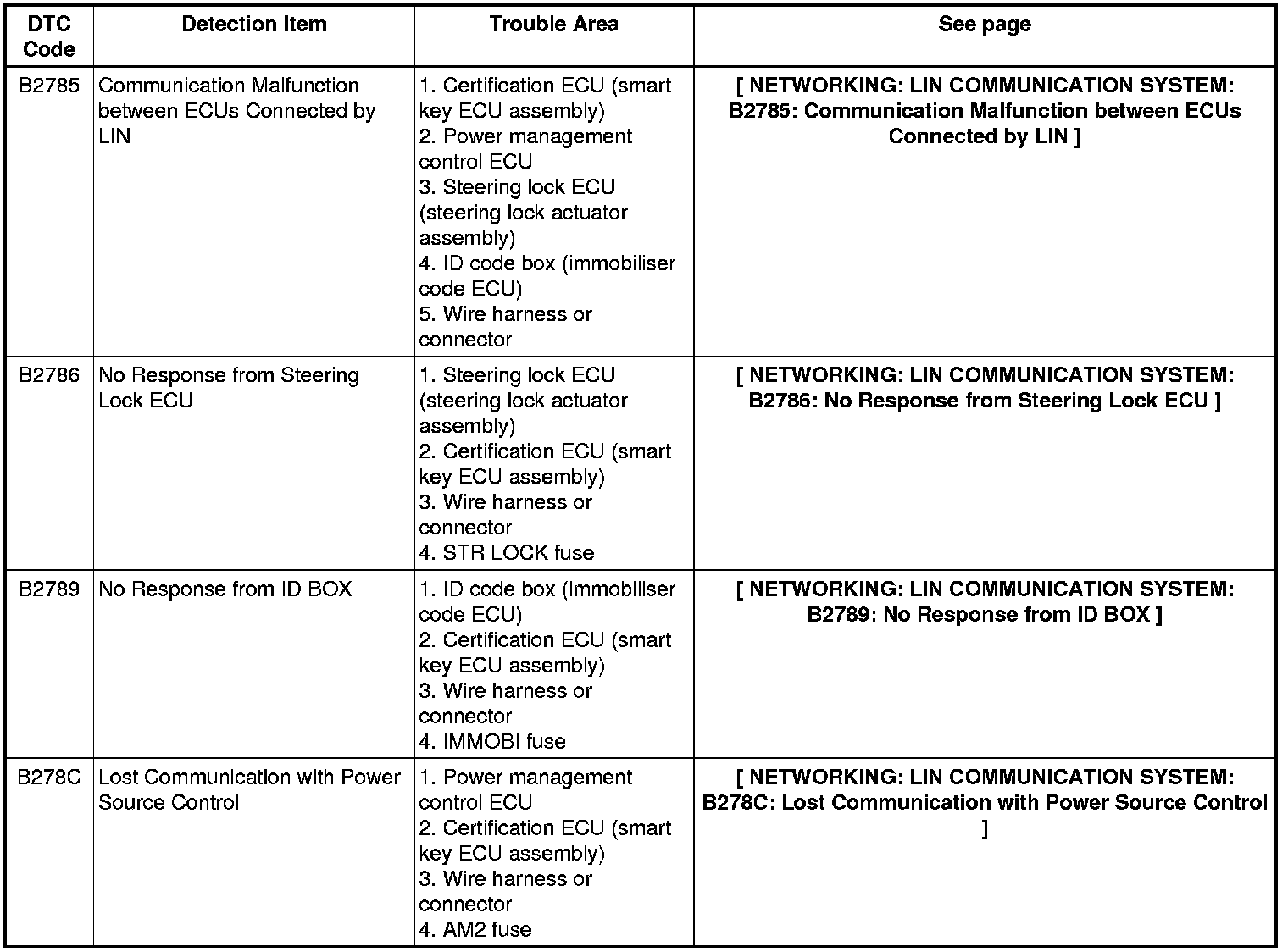 NETWORKING: LIN COMMUNICATION SYSTEM: DIAGNOSTIC TROUBLE CODE CHART