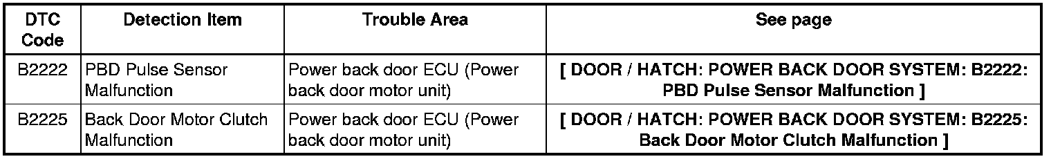 DOOR / HATCH: POWER BACK DOOR SYSTEM: DIAGNOSTIC TROUBLE CODE CHART