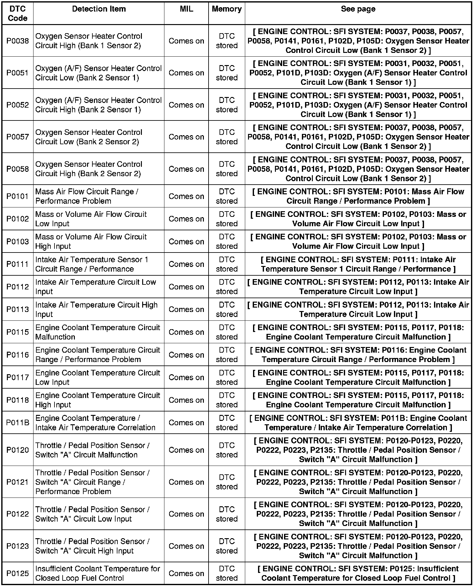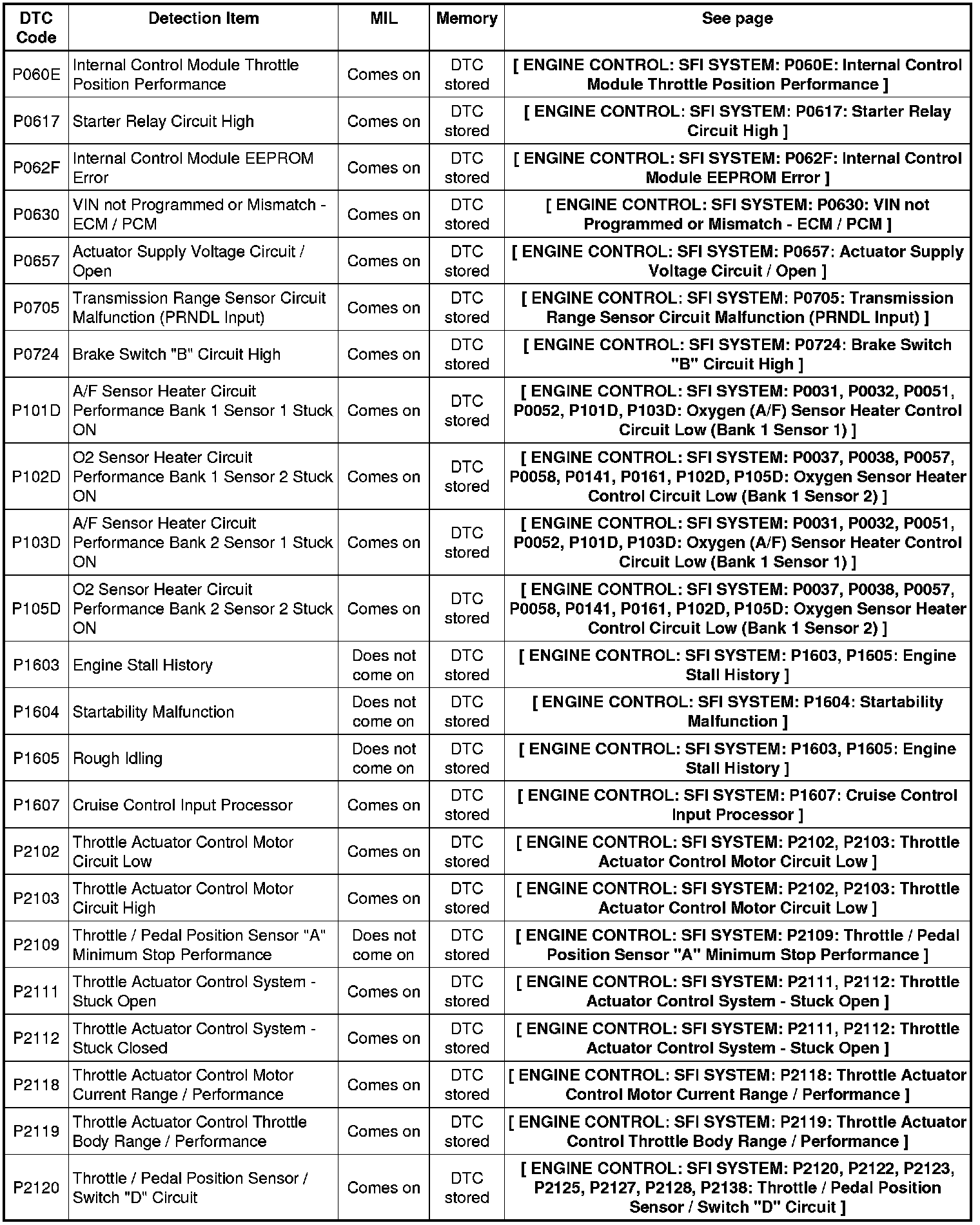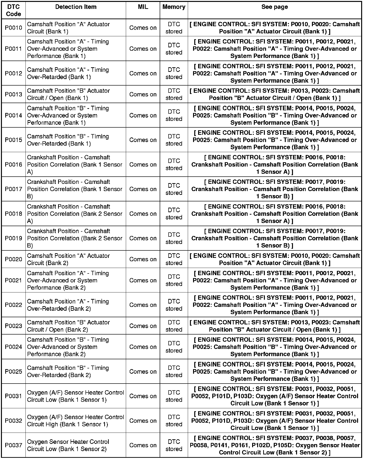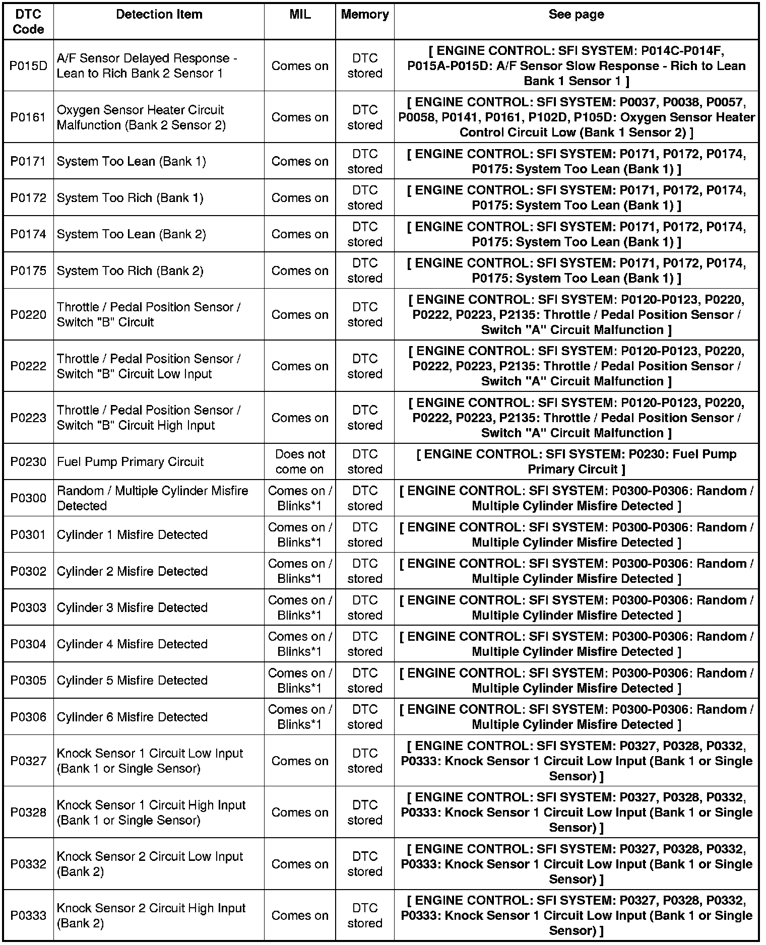 2GR-FE ENGINE CONTROL: SFI SYSTEM: DIAGNOSTIC TROUBLE CODE CHART