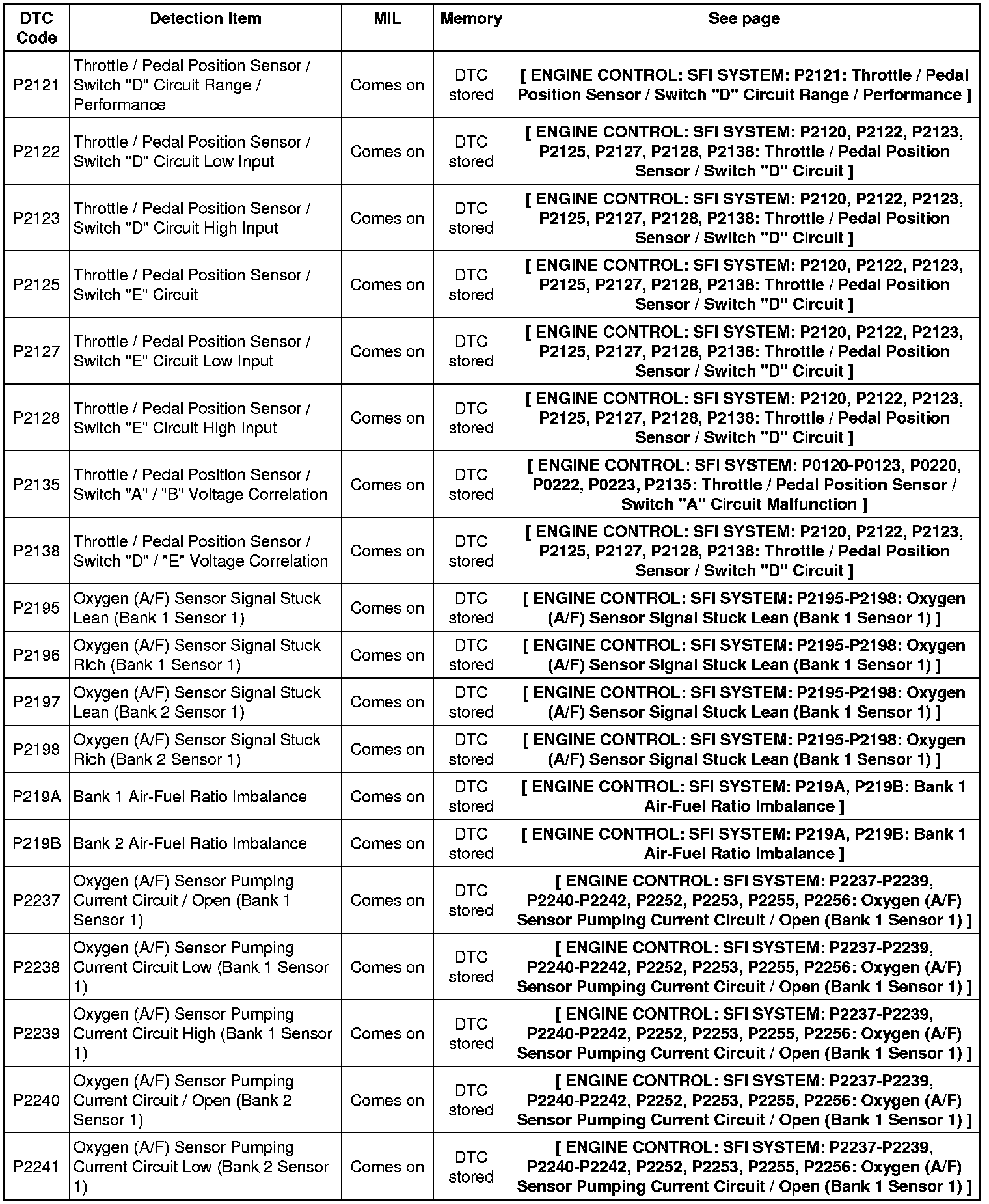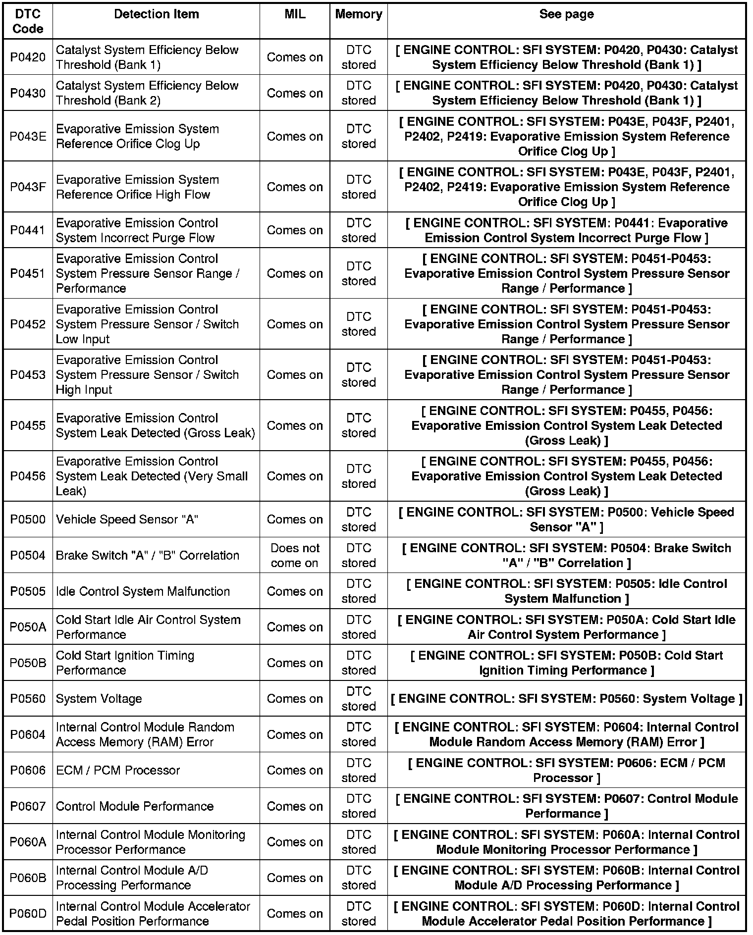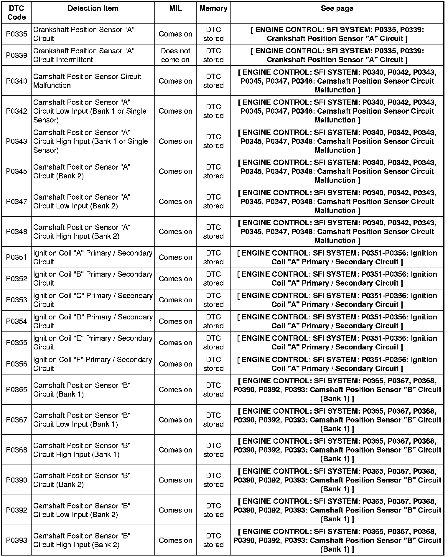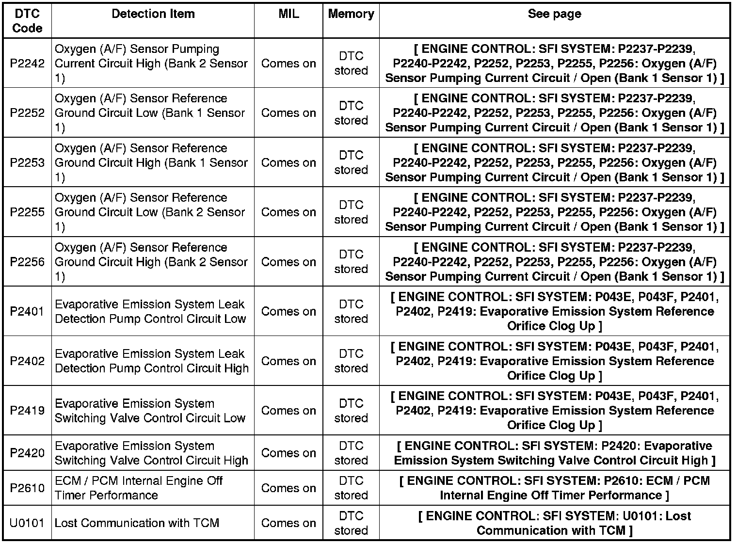 2GR-FE ENGINE CONTROL: SFI SYSTEM: DIAGNOSTIC TROUBLE CODE CHART