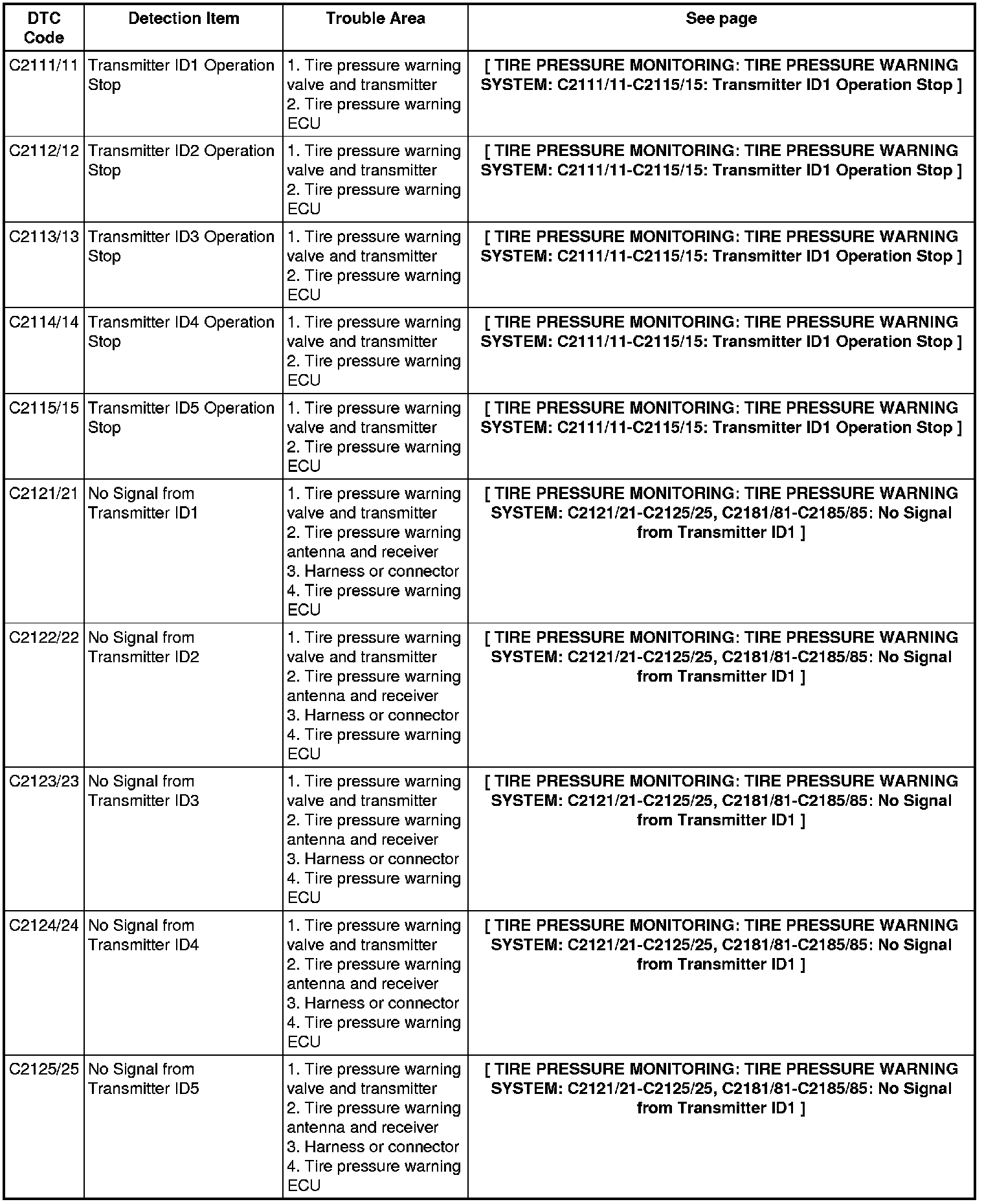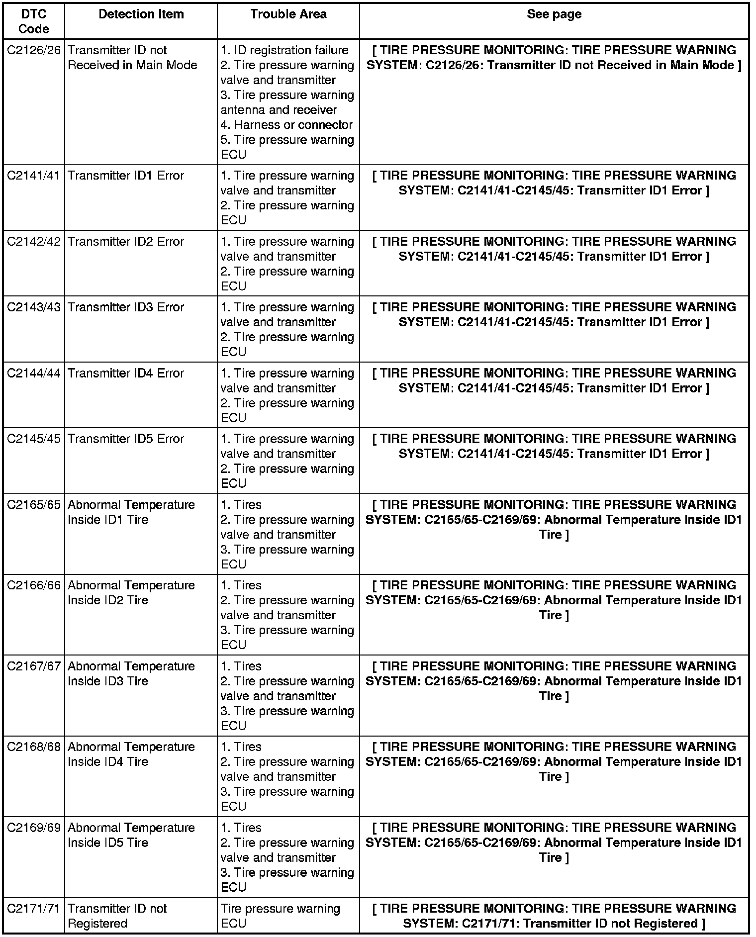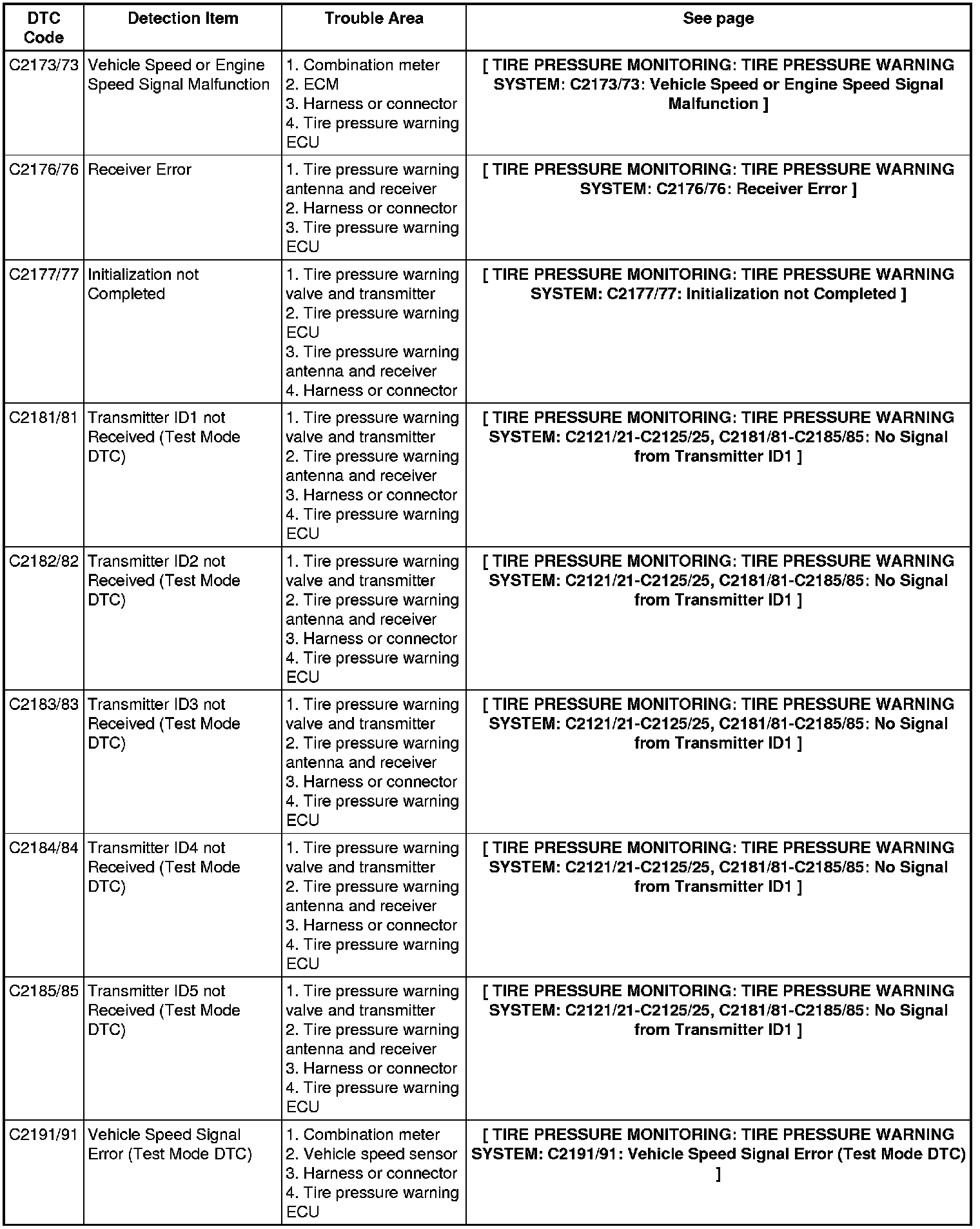TIRE PRESSURE MONITORING: TIRE PRESSURE WARNING SYSTEM: DIAGNOSTIC TROUBLE CODE CHART