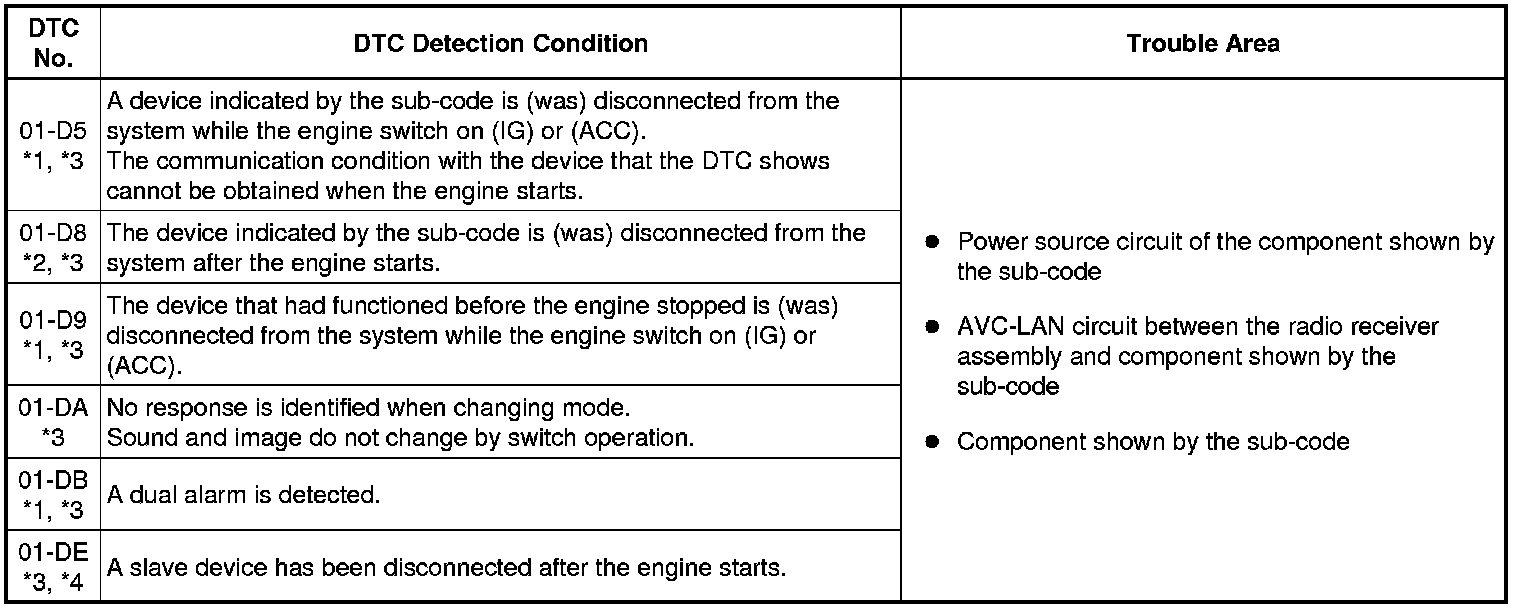 * *3: If the device is reported as not existing during verification, check the power source circuit and AVC-LAN circuit for the device.