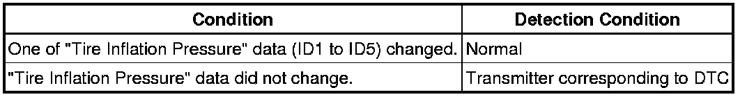 (i) When the "ID Tire Inflation Pressure" data (ID1 to ID5) has changed, repeat this procedure to identify the tire pressure warning valve and transmitter that corresponds to the DTC.