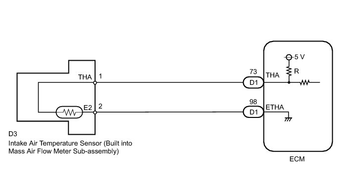 - The intake air temperature sensor is powered by a 5 V supply from the THA terminal of the ECM, via resistor R which is located inside the ECM.