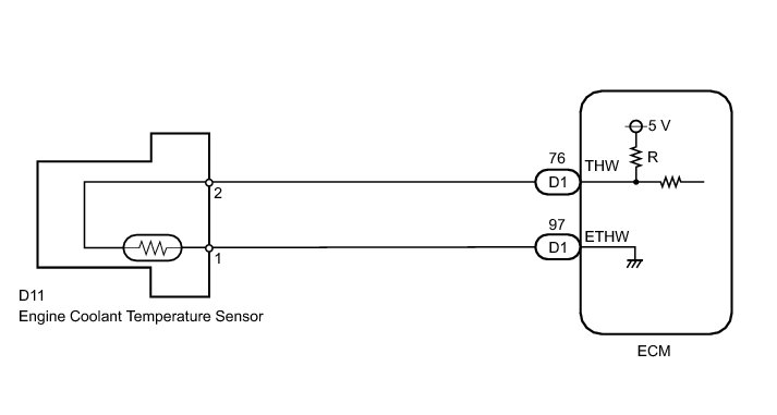 A thermistor, whose resistance value varies according to the engine coolant temperature, is built into the engine coolant temperature sensor.