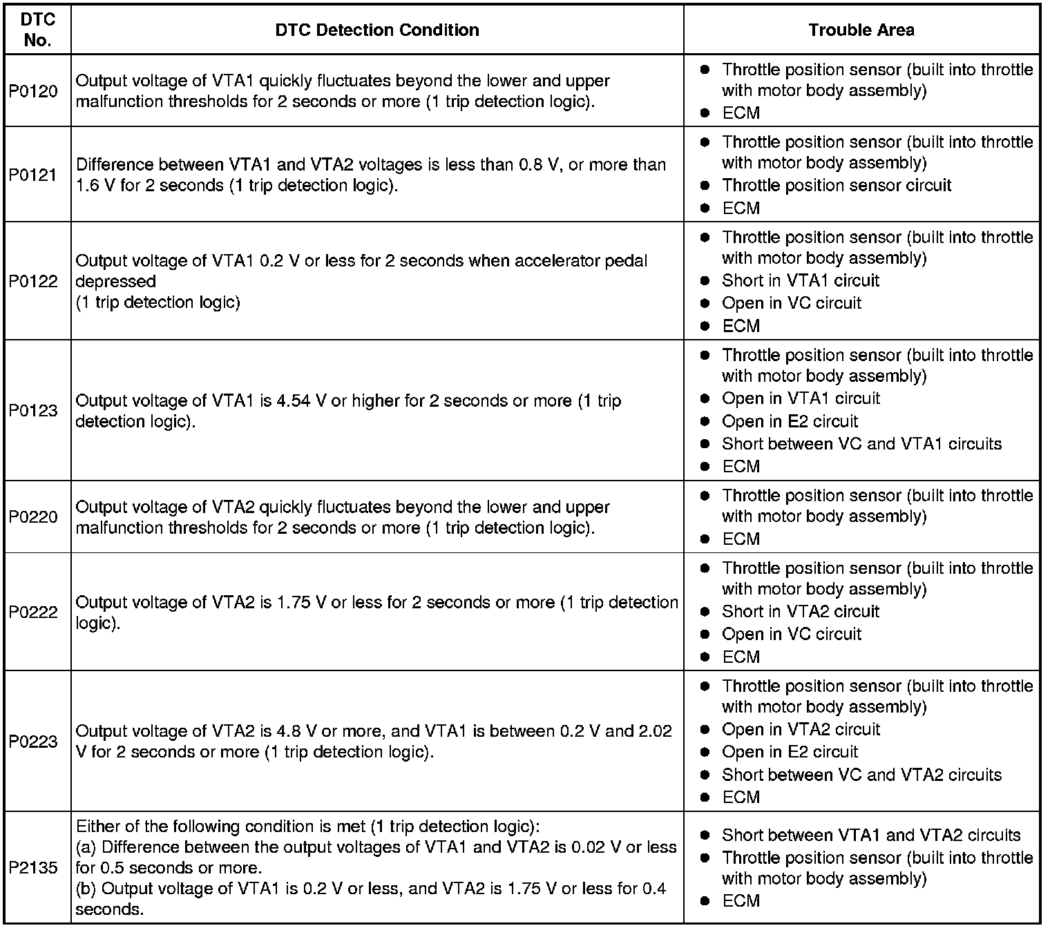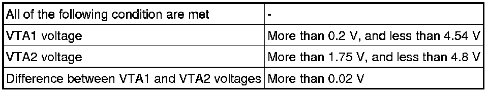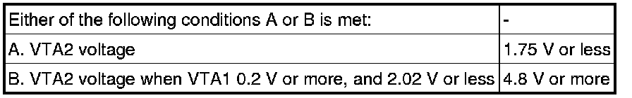 - VTA1 and VTA2 should never be close to the same voltage level. If VTA1 is within 0.02 V of VTA2, the ECM determines that there is a short circuit in the sensor and stores a DTC.