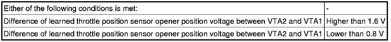 - A specific voltage difference is expected between the sensor terminals, VTA1 and VTA2, for each throttle valve opening angle. If the difference between VTA1 and VTA2 is incorrect, the ECM interprets this as a malfunction in the sensor and stores a DTC.