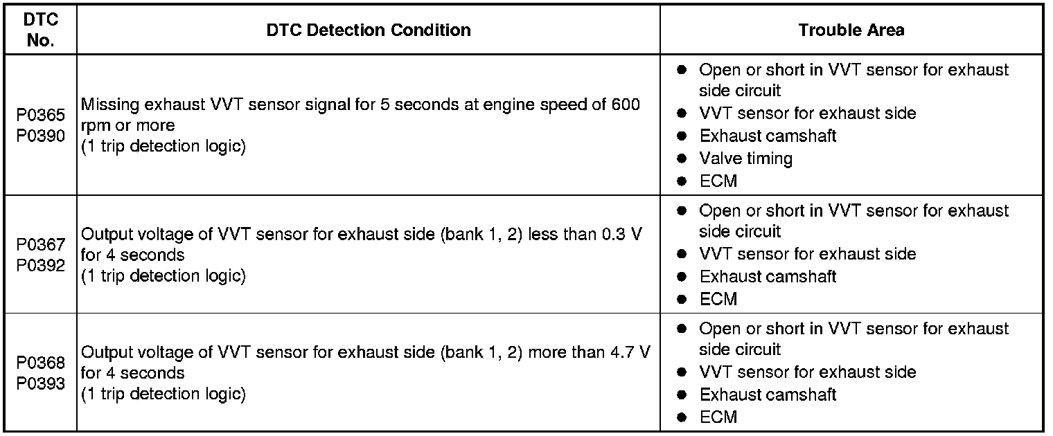 2GR-FE ENGINE CONTROL: SFI SYSTEM: P0365, P0367, P0368, P0390, P0392, P0393: Camshaft Position Sensor "B" Circuit (Bank 1)