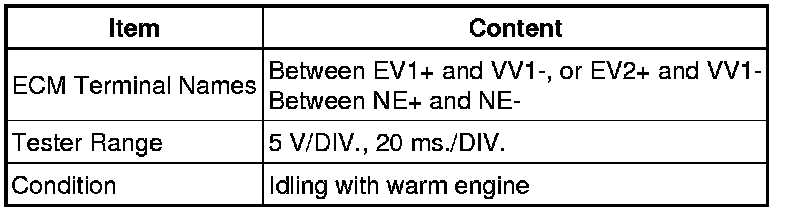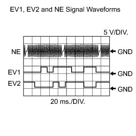 - EV1 and EV2 stand for the VVT sensor for exhaust side signal, and NE stands for the crankshaft position sensor signal.