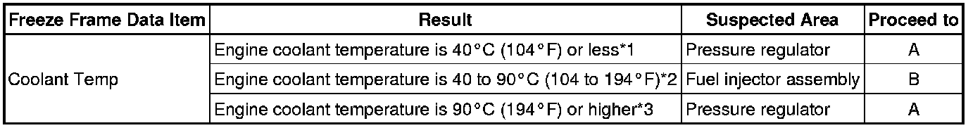 *1: If the engine coolant temperature is 40°C [104°F] or less (after stopping the engine and the vehicle is not driven for a long period of time), the pressure regulator may be stuck open. Attach a fuel pressure gauge and check the ability to maintain fuel pressure after stopping the engine.