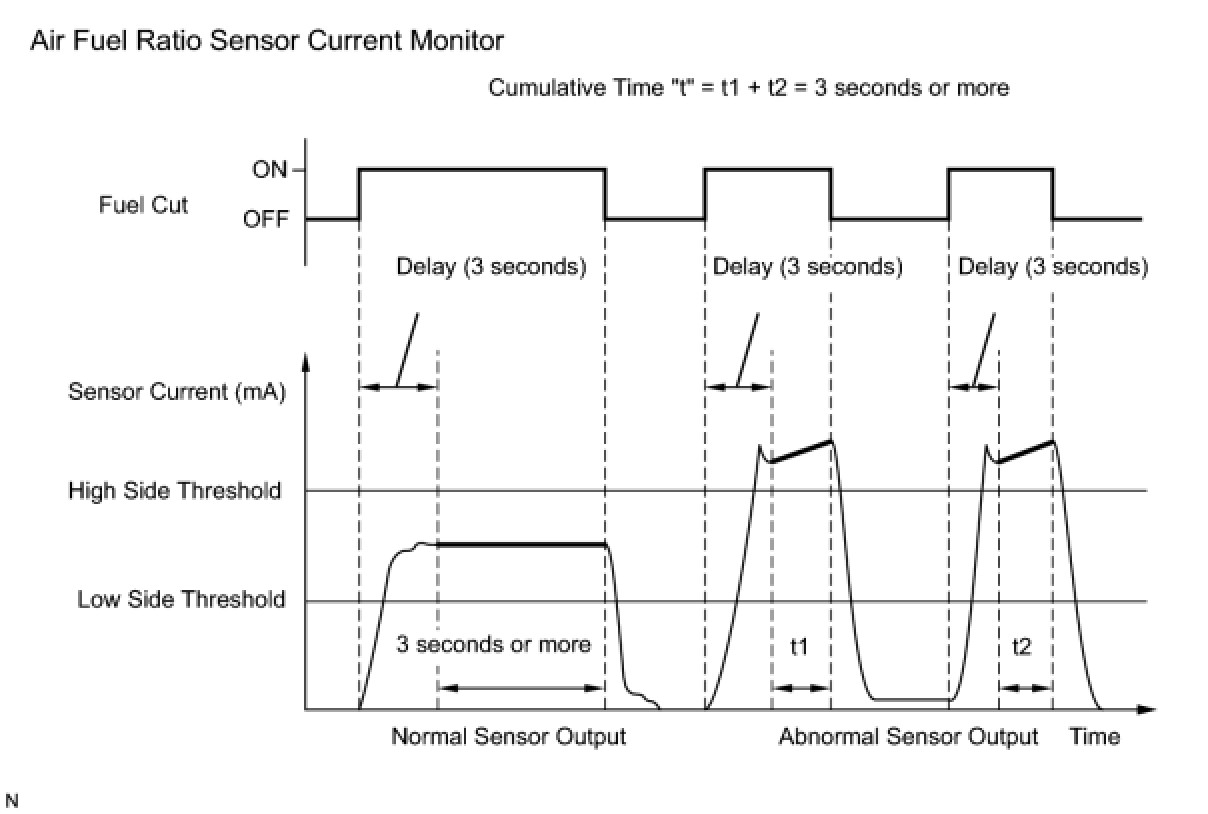 (i) Check the test value of the air fuel ratio sensor output current during fuel cut.