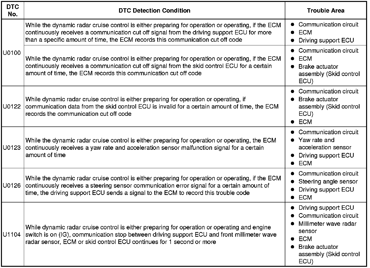 CRUISE CONTROL: DYNAMIC RADAR CRUISE CONTROL SYSTEM: U0100, U0122, U0123, U0126, U1104: Lost Communication with ECM / PCM "A"