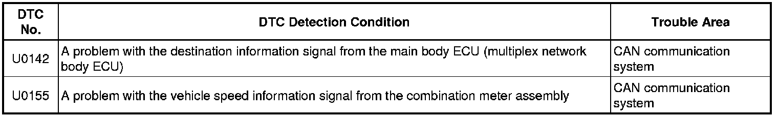 These DTCs are stored when the clearance warning ECU*1 or parking assist ECU*2 can not receive and recognize several signals via the CAN communication system.
