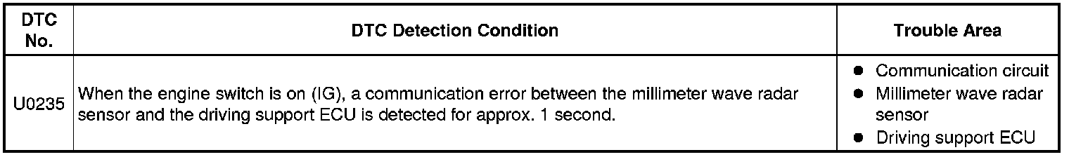 PRE-COLLISION: PRE-COLLISION SYSTEM: U0235: Lost Communication with Cruise Control Front Distance Range Sensor