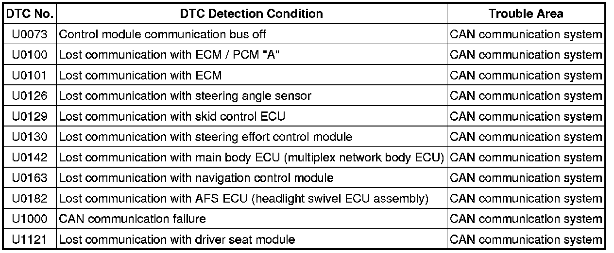 The DTCs are stored when the CAN communication system is malfunctioning.