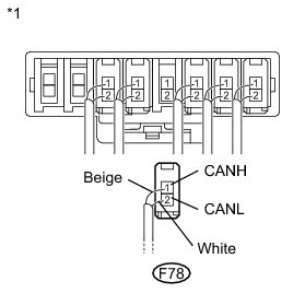 (c) While observing the resistance value shown on the tester, disconnect branch wire connector (except F74 and F78) from the CAN No. 6 junction connector until the resistance becomes normal (6 kOhms or higher (for +B short) or 200 Ohms or higher (for ground short)).