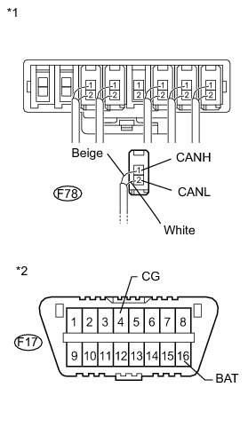 (b) Disconnect the connector that includes terminals CANH and CANL from the ECU to which the bus wire shorted to +B or GND is connected.