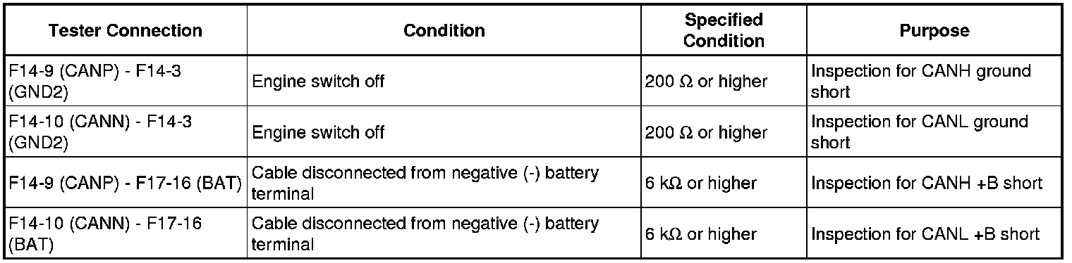 It is only necessary to perform the inspection in the above table for the result (short circuit) that was obtained in the Check CAN MS Bus Wire inspection.