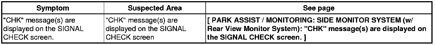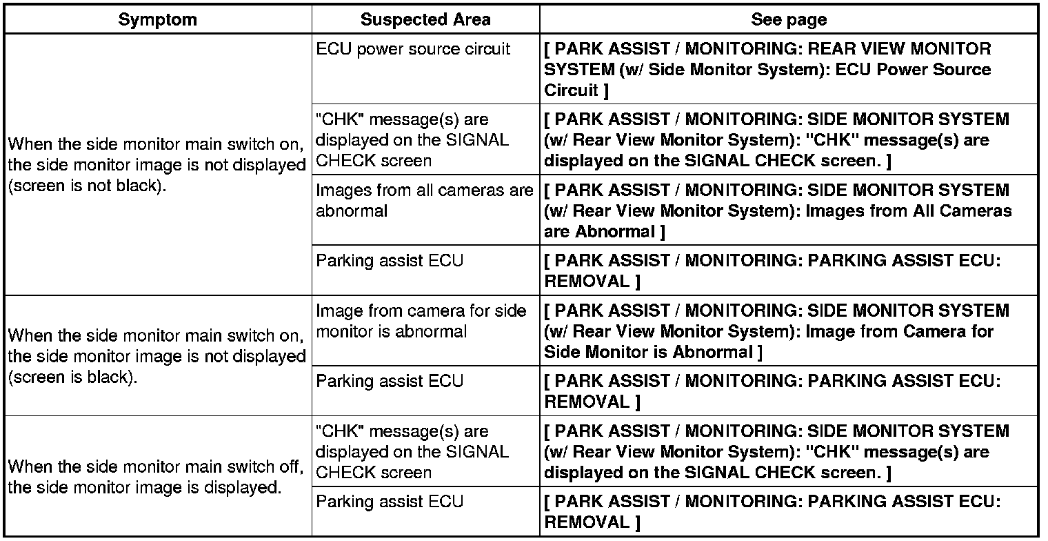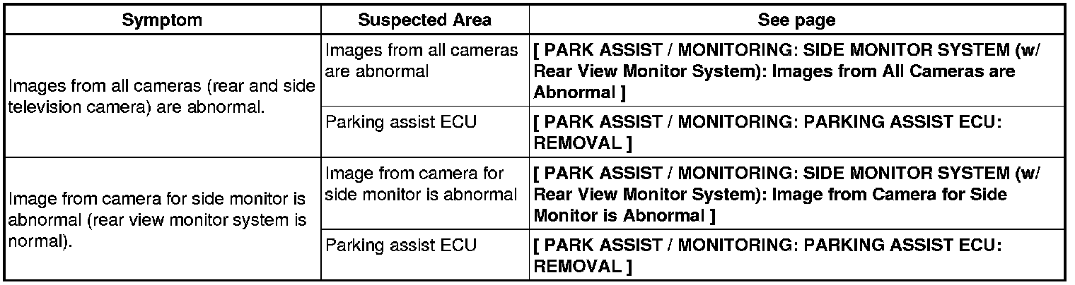 PARK ASSIST / MONITORING: SIDE MONITOR SYSTEM (w/ Rear View Monitor System): PROBLEM SYMPTOMS TABLE