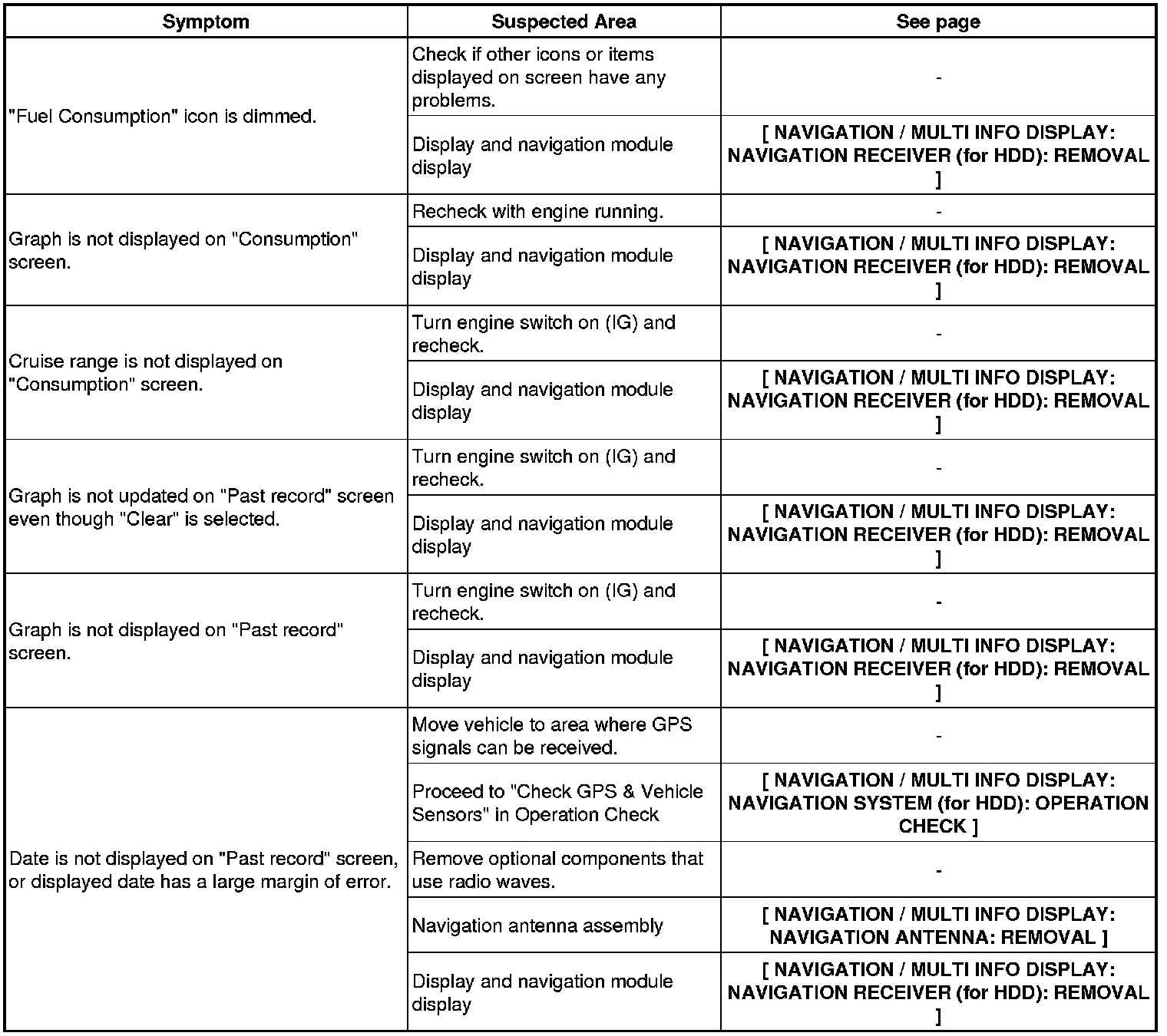 NAVIGATION / MULTI INFO DISPLAY: NAVIGATION SYSTEM (for HDD): PROBLEM SYMPTOMS TABLE