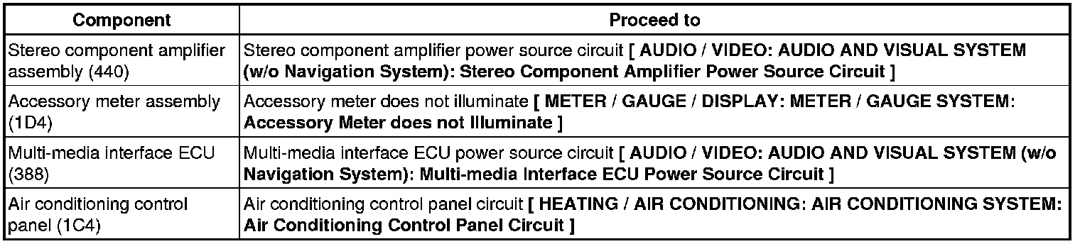 * For details of the connectors, refer to Terminals of ECU Audio and Visual System (w/o Navigation System).