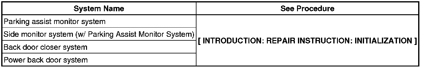 When disconnecting the cable from the negative (-) battery terminal, initialize the following systems after the cable is reconnected.