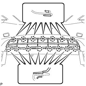 (a) Disengage the 15 claws and remove the No. 1 lower radiator grille.