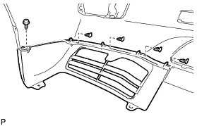 (b) Disengage the hook and remove the front bumper hole cover LH.