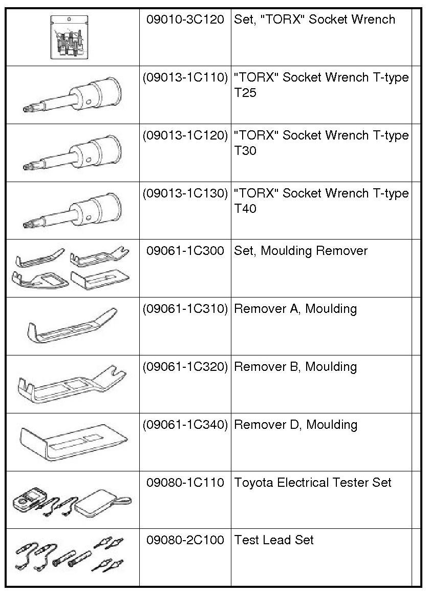 PREPARATION: DOOR / HATCH: RECOMMENDED TOOLS