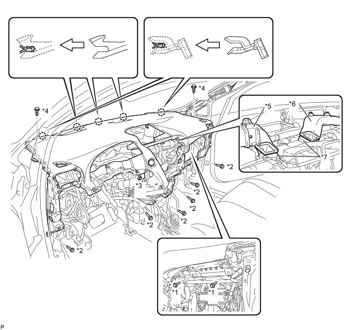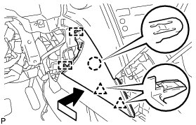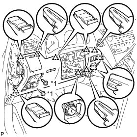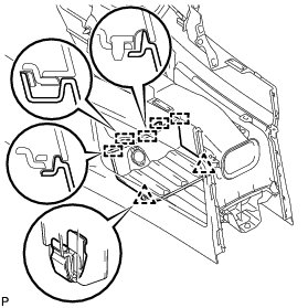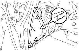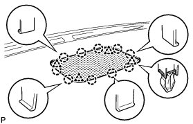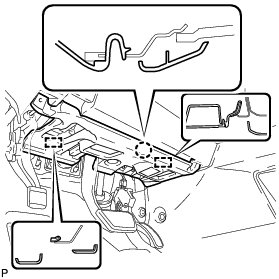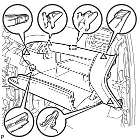 (a) Engage the 5 claws and temporarily install the instrument panel safety pad assembly as shown in the illustration.