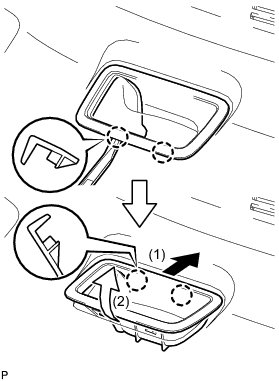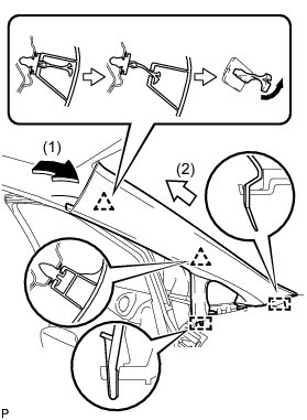 (a) Pull the upper part of the garnish toward the inside of the cabin and disengage the garnish from the base of the 2 clips.