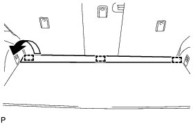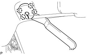 (b) Pass the floor anchor of the rear seat outer seat belt assembly LH through the roof side inner garnish assembly LH and remove the roof side inner garnish assembly LH.