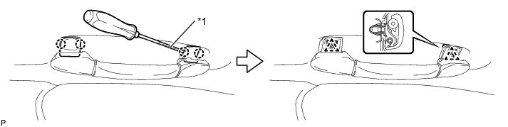 (a) Using a screwdriver, disengage the 4 claws and remove the 2 assist grip covers.