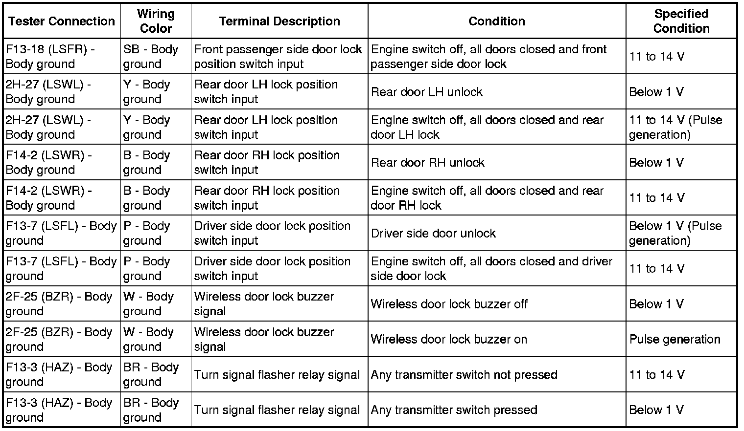 DOOR LOCK: WIRELESS DOOR LOCK CONTROL SYSTEM: TERMINALS OF ECU