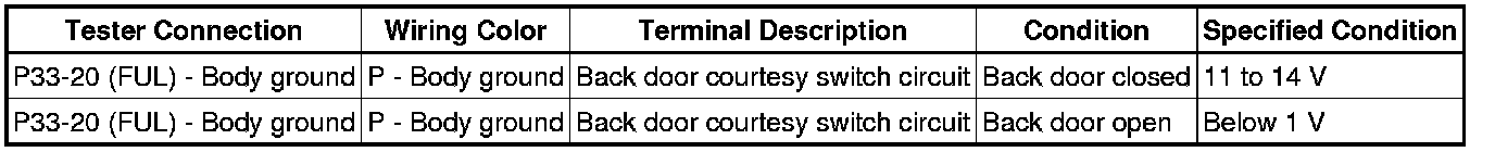 If the result is not as specified, the power back door ECU (power back door motor unit) may have a malfunction.