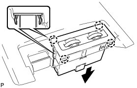 (e) Engage the 4 claws and 4 clips to install the upper console panel sub-assembly.