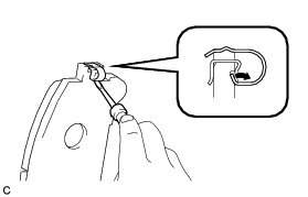 (a) Using a screwdriver, remove the 2 pad wear indicator plates from the front disc brake pads as shown in the illustration.