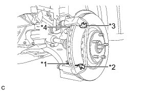 (a) Remove the 2 bolts and front disc brake cylinder mounting from the steering knuckle.
