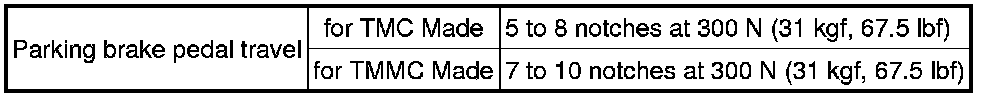 SPECIFICATIONS: PARKING BRAKE: SERVICE DATA