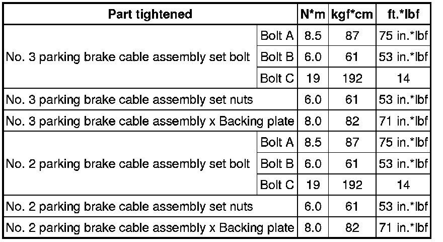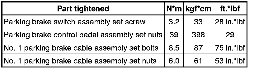 SPECIFICATIONS: PARKING BRAKE: TORQUE SPECIFICATIONS