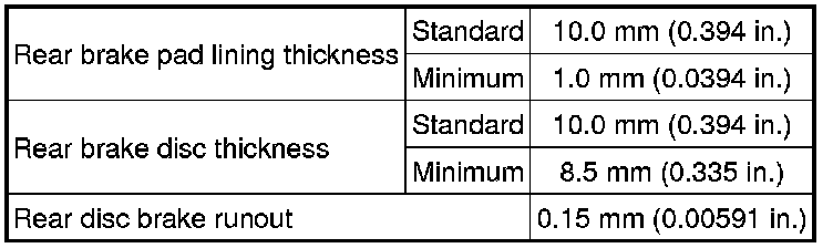 SPECIFICATIONS: BRAKE (REAR): SERVICE DATA