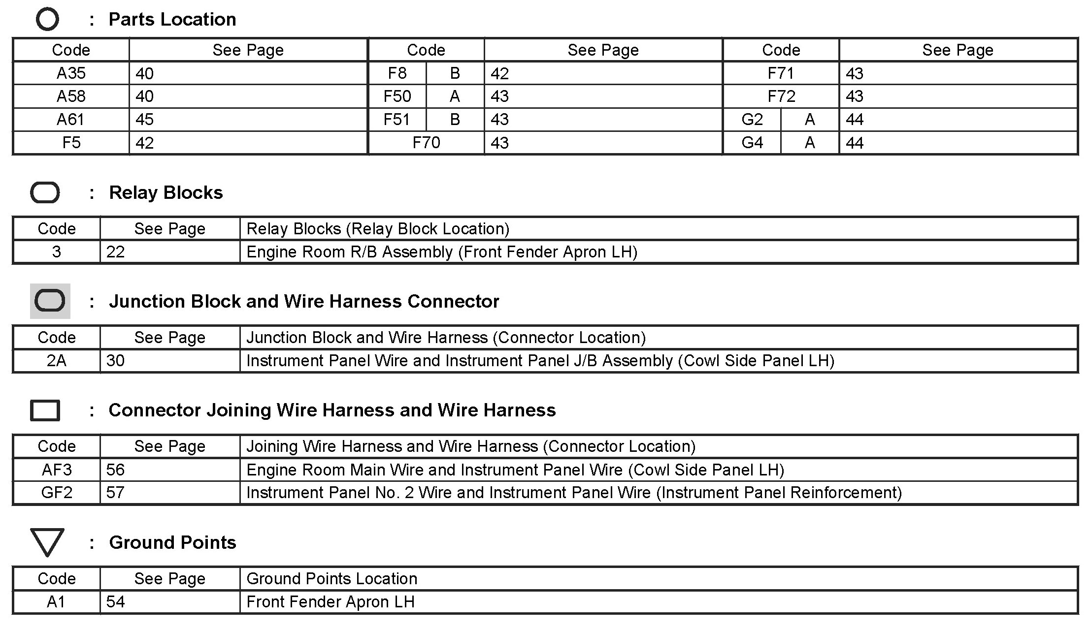 Locations: The locations of components, connectors, ground points, and splices referred to within these diagrams can be found at Vehicle Locations. Locations
