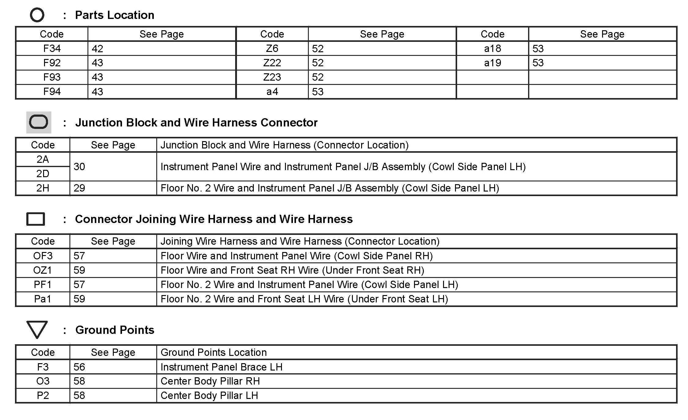 Locations: The locations of components, connectors, ground points, and splices referred to within these diagrams can be found at Vehicle Locations. Locations