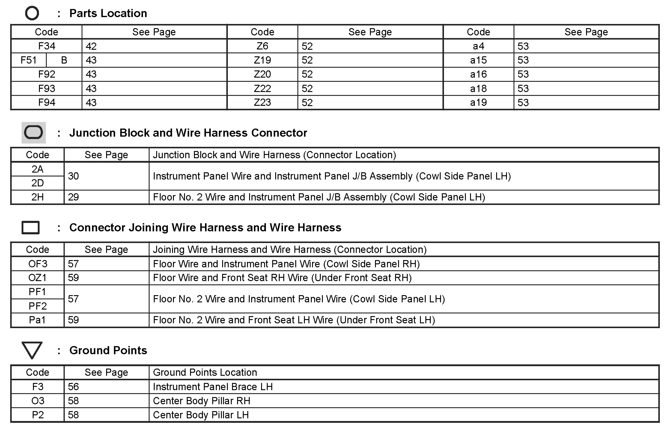 Locations: The locations of components, connectors, ground points, and splices referred to within these diagrams can be found at Vehicle Locations. Locations