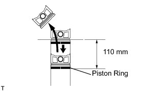 (b) Using a piston, push the piston ring slightly beyond the bottom of the ring travel, 110 mm (4.33 in.) from the top of the cylinder block sub-assembly.