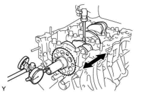 (b) Using a dial indicator, measure the thrust clearance while prying the crankshaft back and forth with a screwdriver.